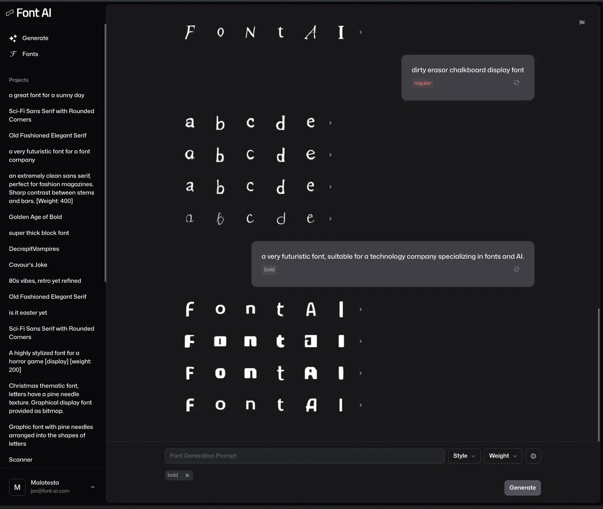 "The interface is clean and intuitive. I was able to generate my first font within 5 minutes of signing up."