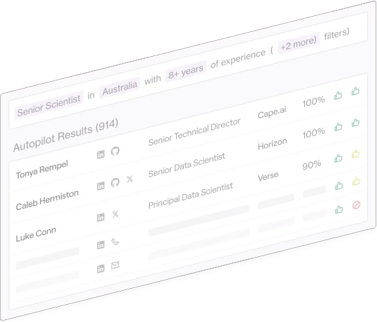 "PeopleGPT has completely changed how I source. I can just type "Engineers who worked at Stripe and now live in Berlin" and it works perfectly every time. It saves me at least 10 hours a week on manual filtering."